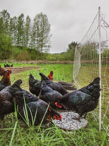 In addition to their probiotic feasts, chickens also enjoy eating rocks. Yep, rocks. The old saying “As rare as hen’s teeth” may sound like a silly figure of speech, but it actually rings true. Chickens really don’t have teeth, so they rely on eating small rocks that get stored in their gizzard (a super muscle-y stomach) to help grind up food. And since Rawley’s birds eat a whole grain feed, it’s especially important for them to have a strong and healthy gizzard to keep their digestive systems working well. The Puyallup Valley bottom soil also has a scarcity of rocks, so he makes sure to have some available to his hens at all times.