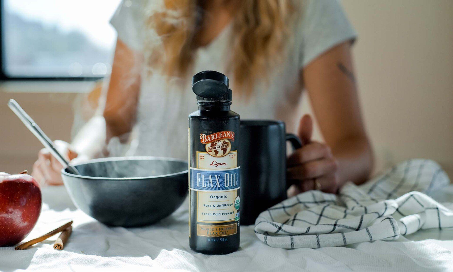 Then, most importantly, we round out our team with a host of plantbased, parent Omega-3 from flax oil. Flax oil can be used in salad dressings, over steamed veggies and added into sauces, soups and smoothies. Ground flaxseeds can be used in baking, to add a crunchfactor to salads and, of course, mixed into a daily smoothie. In addition to packing a lot of Omega-3, these super seeds provide great fiber for better digestion. It’s not one or the other, or one vs. the other; it’s both. Fish and flax oil work together as a team to get the job done.