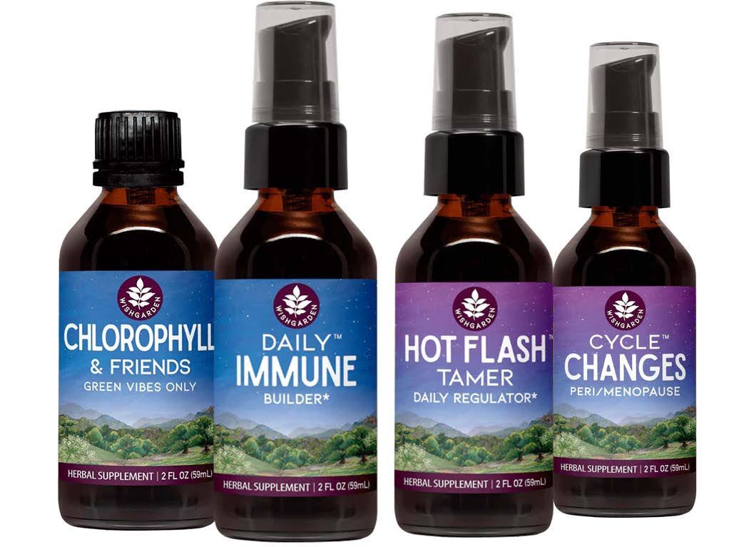Tonic formula examples: Chlorophyll & Friends, Daily Immune, Hot Flash Tamer, Cycle Changes.