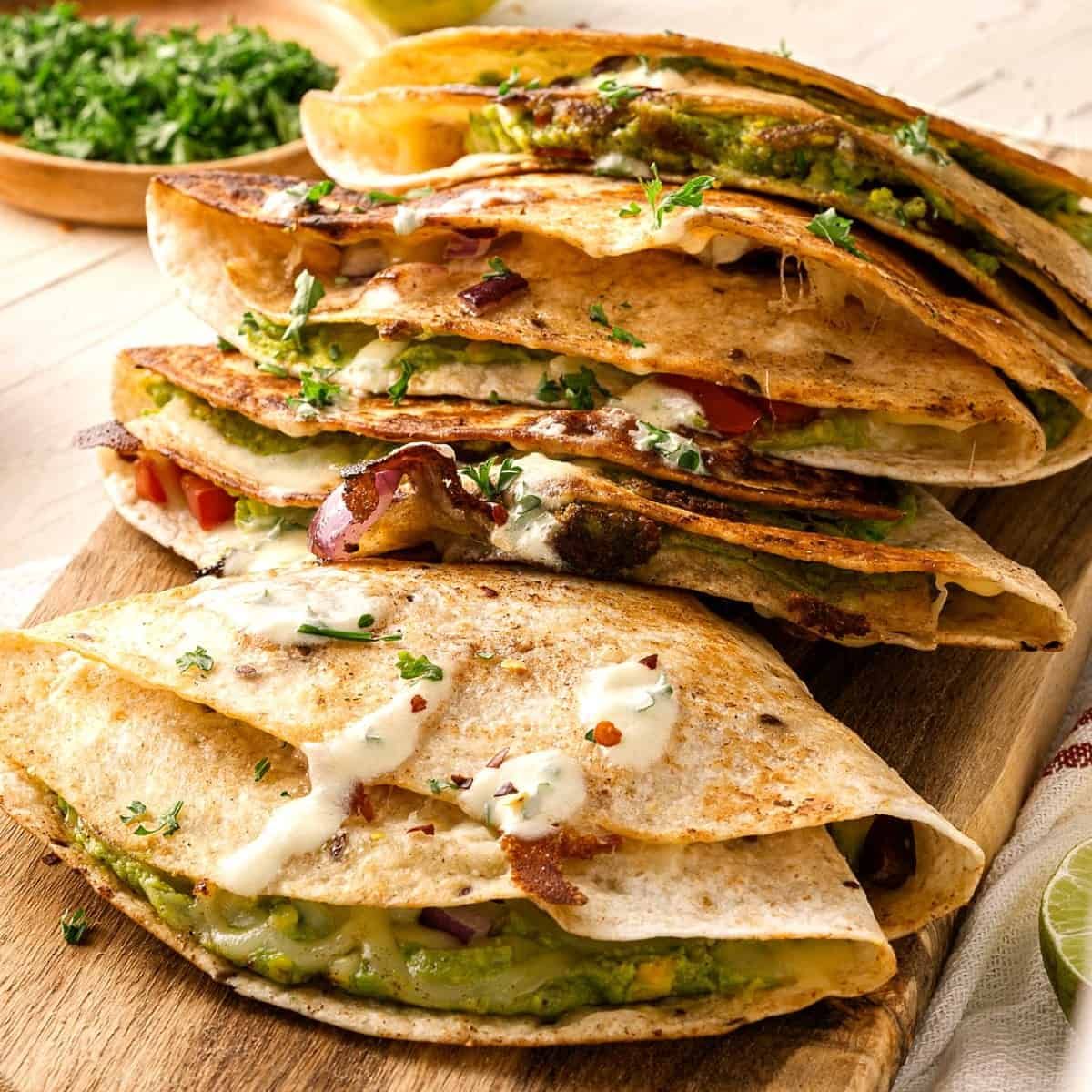 Simply fill each quadrant of a tortilla with your favorite fillings. The magic is in how the quesadilla is folded: The two inner quadrants stay cool while the outer two get hot and melty in the skillet!